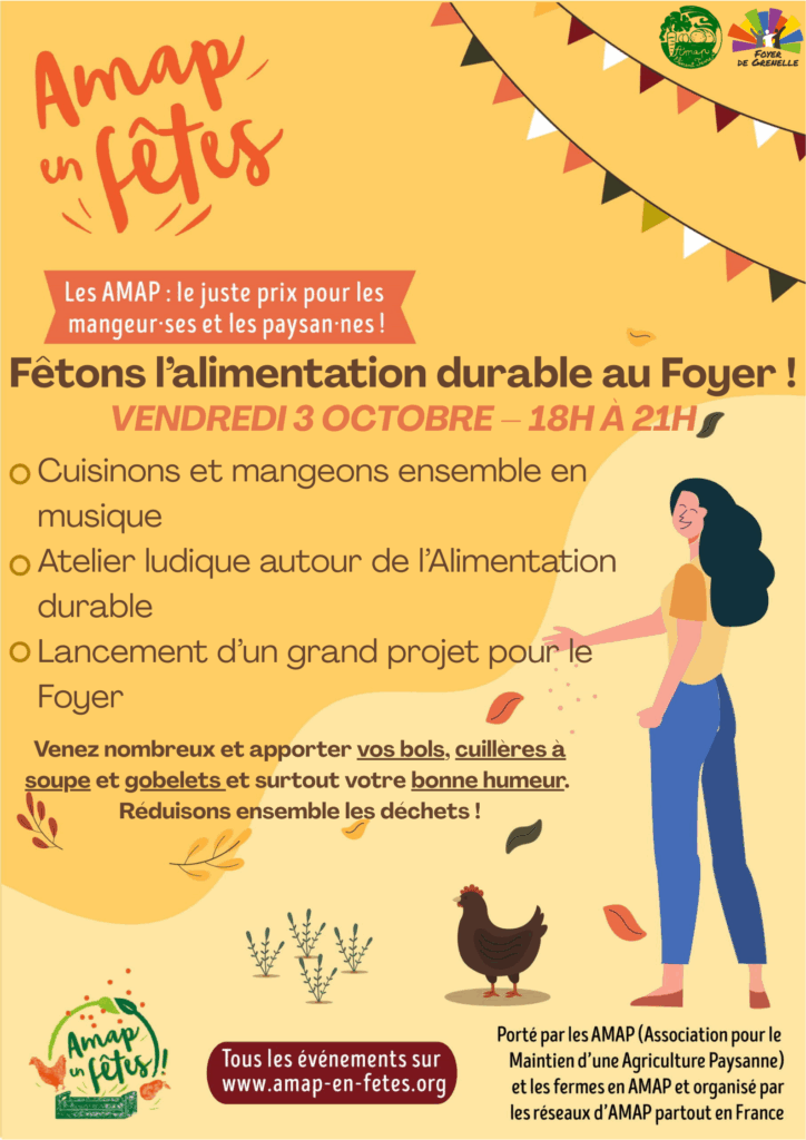 Soirée avec atelier autour de la fresque de l’alimentation, trois ateliers cuisine et le lancement d’un projet de caisse alimentaire solidaire entre le centre sociale et deux AMAP
